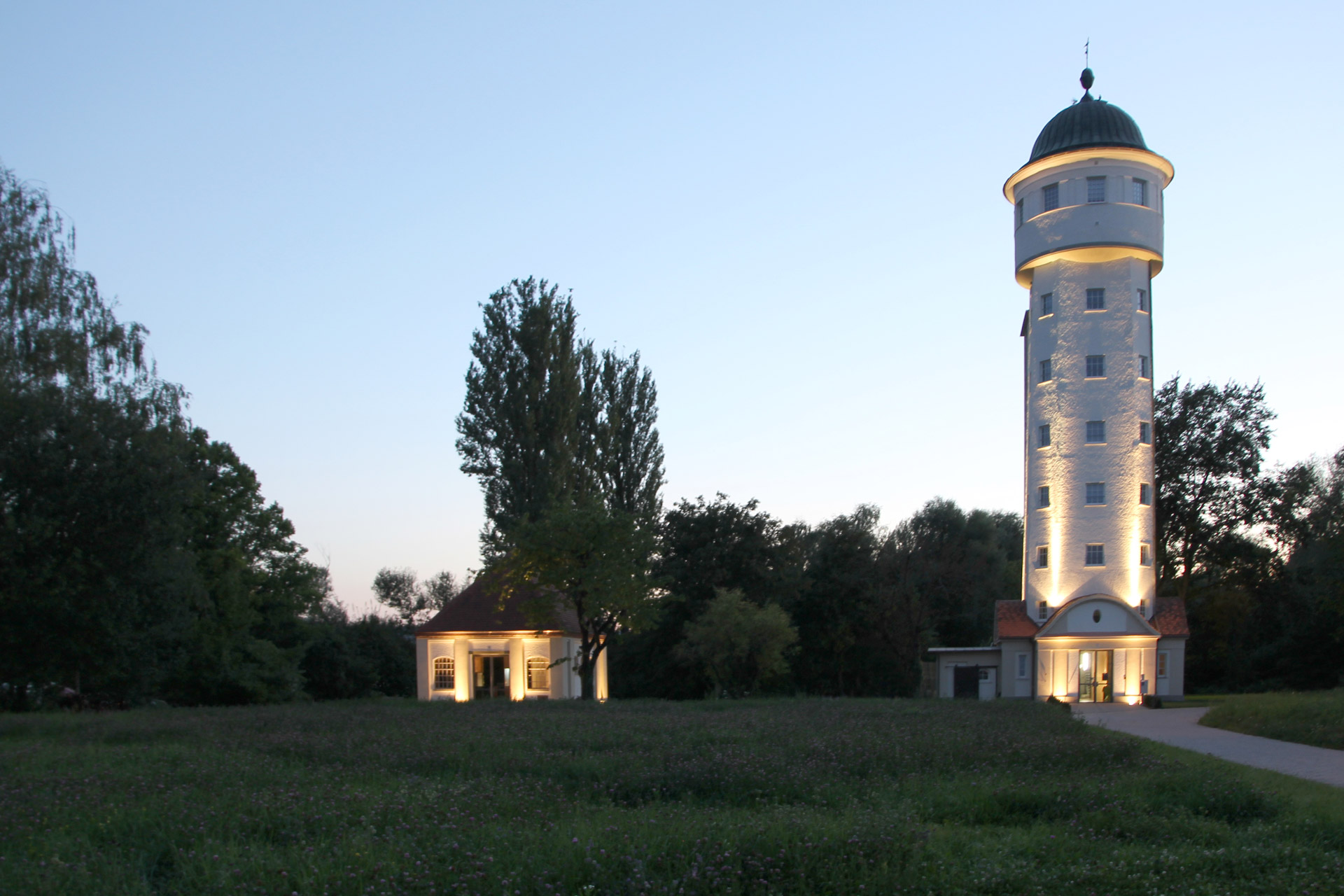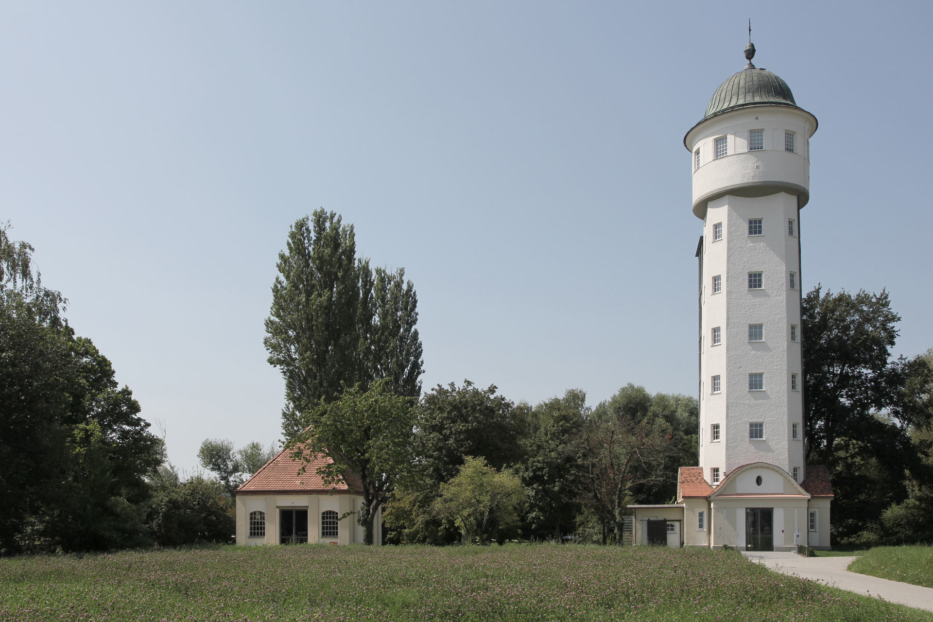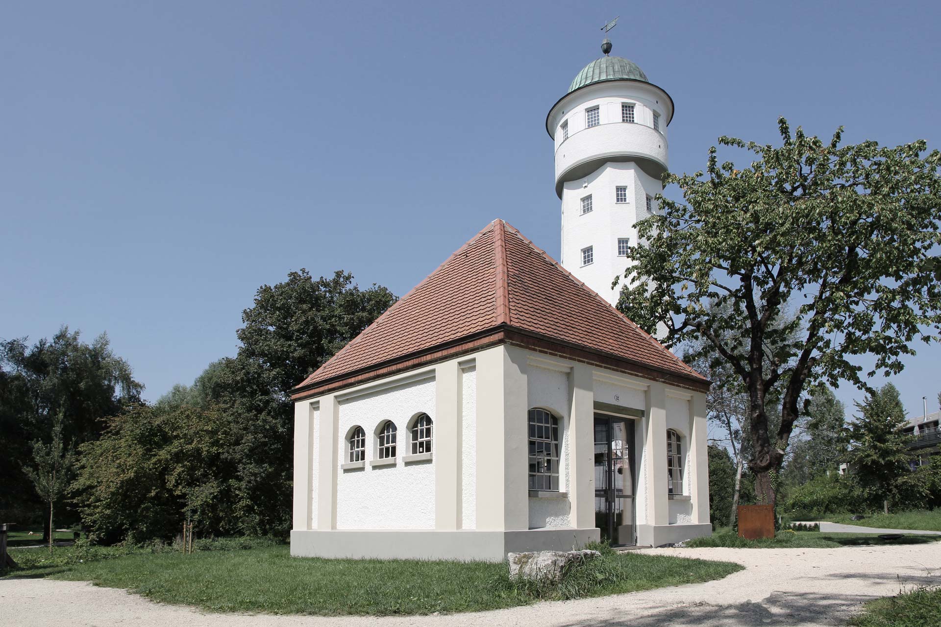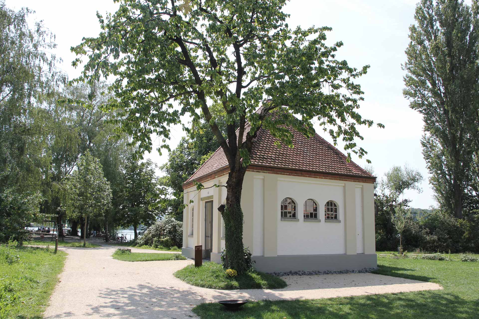 Das zum Turm gehörende, denkmalgeschützte Pumpenhaus, welches ufernah am Seerhein steht, soll zur Kleingastronomie umgenutzt werden.