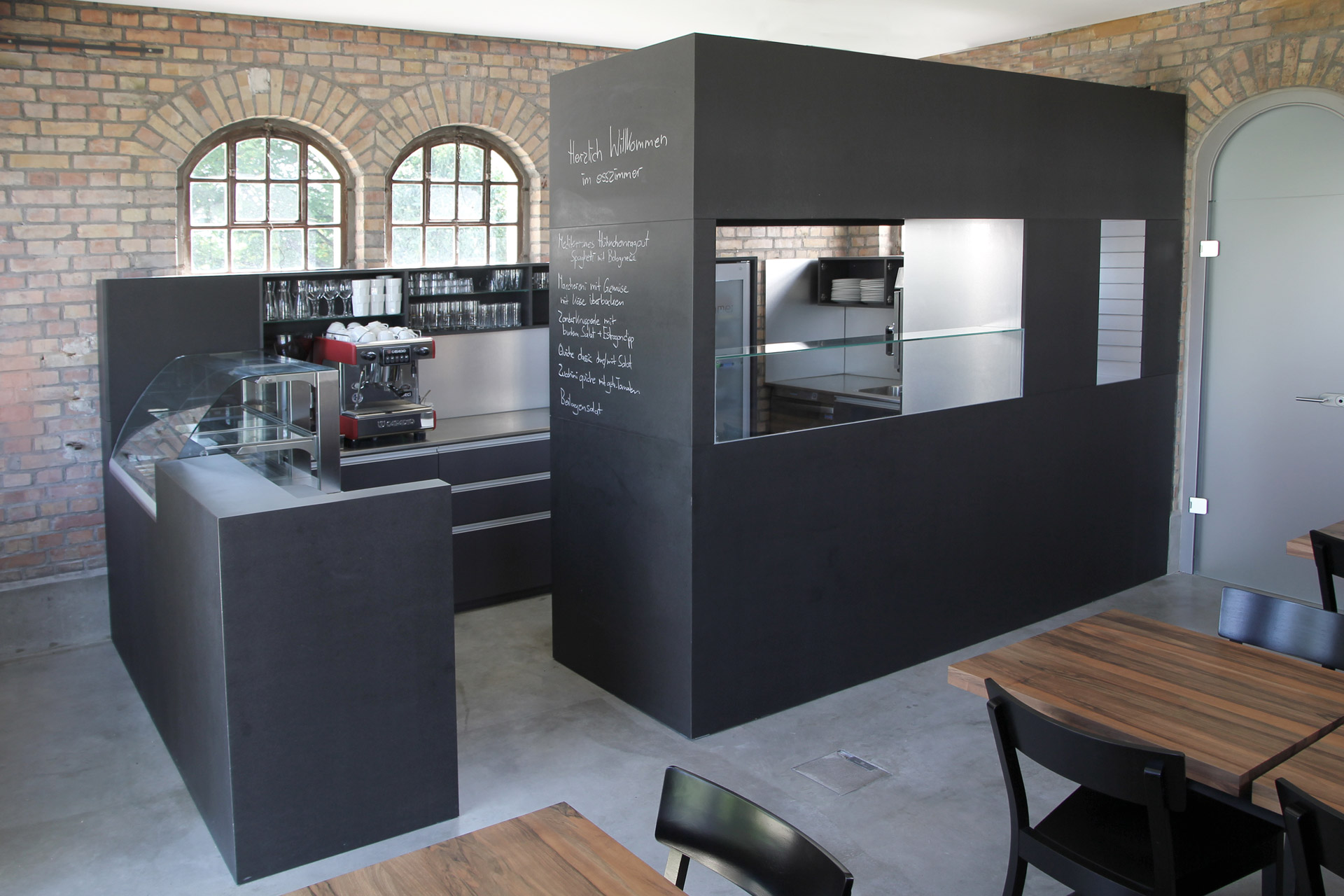Auf nur 33qm planen die Architekten eine Showküche, in der bis zu 4 Personen gleichzeitig arbeiten, und einen Gastraum, in dem 18 Personen bequem Platz finden.